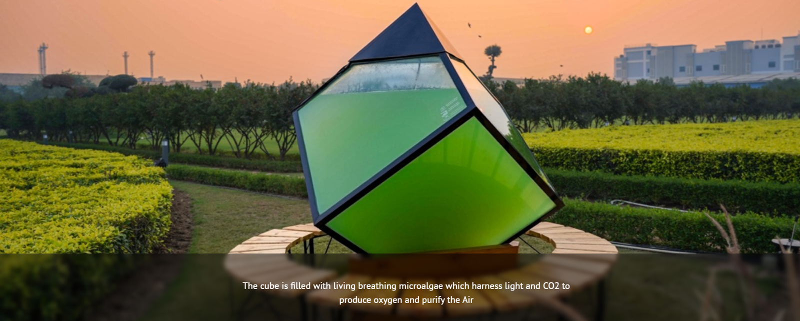 - Purification: The microalgae absorb CO2, Nitrogen Oxides (NOx), and Volatile Organic Compounds (VOCs).